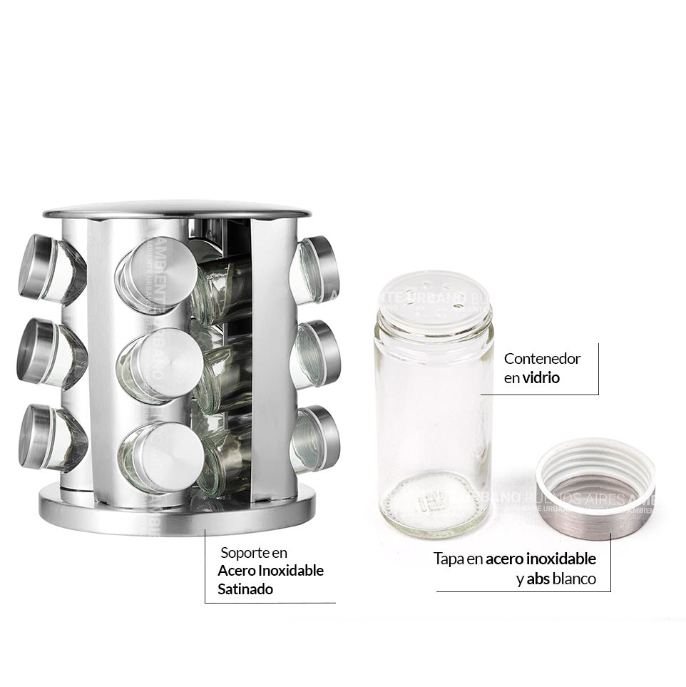 Nuestro elegante Condimentero 360 Para Especias X 12 está diseñado para ayudarte a mantener tus especias organizadas y siempre a la mano.