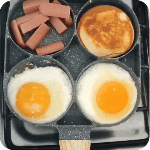 Imagina preparar el desayuno de toda tu familia en minutos: huevos fritos, panqueques esponjosos, salchichas doradas y verduras al vapor… ¡todo al mismo tiempo y en un solo sartén! 🙌