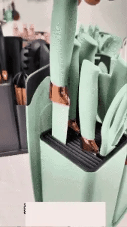 Este set no solo se ve bien, sino que es increíblemente práctico. Viene con un cubo de almacenamiento que mantiene todo organizado, ayudándote a ahorrar espacio y a mantener tu cocina ordenada. ¡Así que no solo mejoras tu cocina, sino también tu eficiencia! 📌